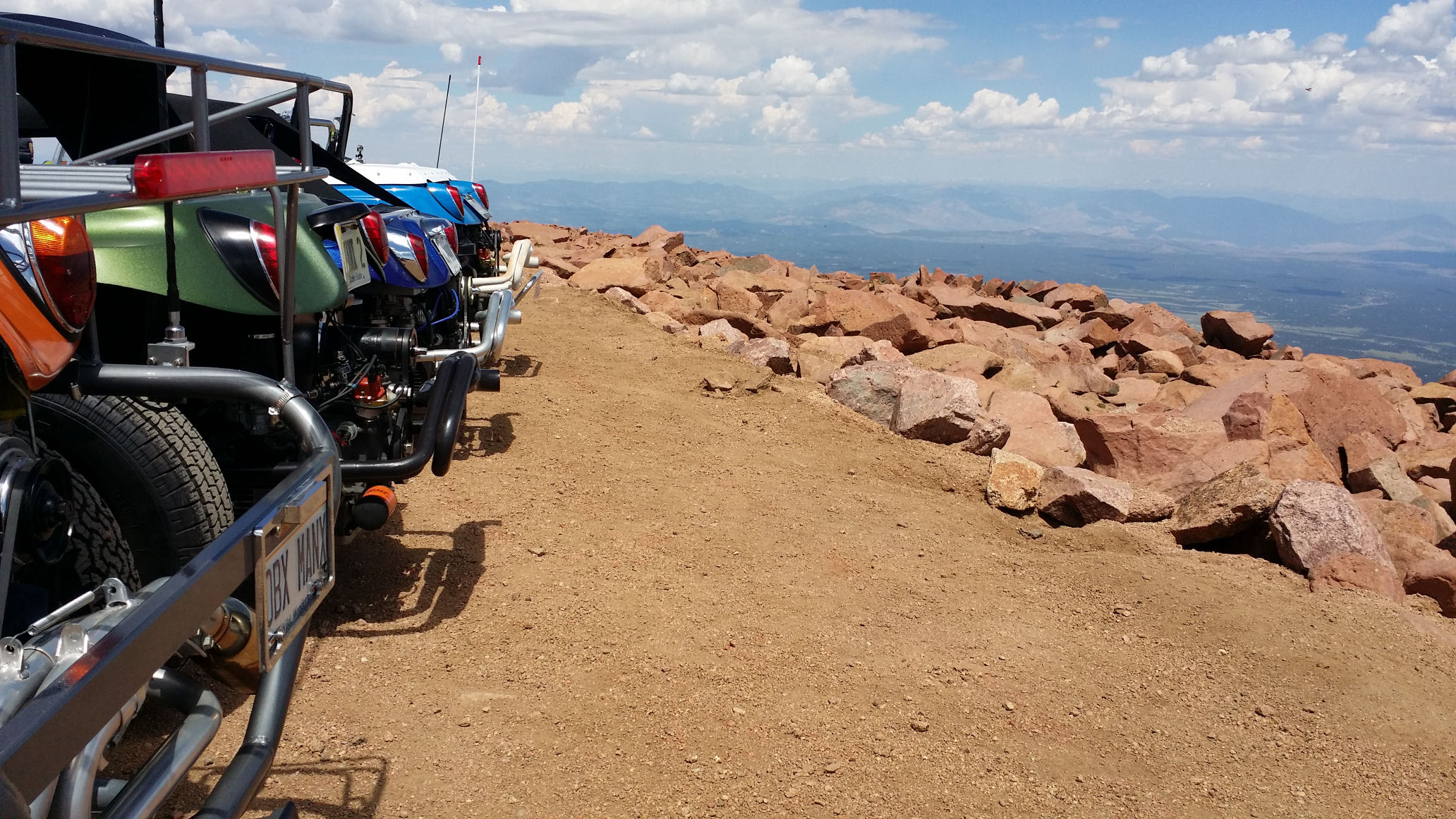 a couple of beach buggies at 14,000 ft above sea level. Atop Pikes Peak, Colorado