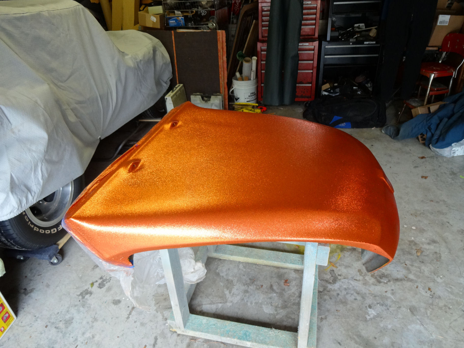 Fiberglass repaired and flaked.