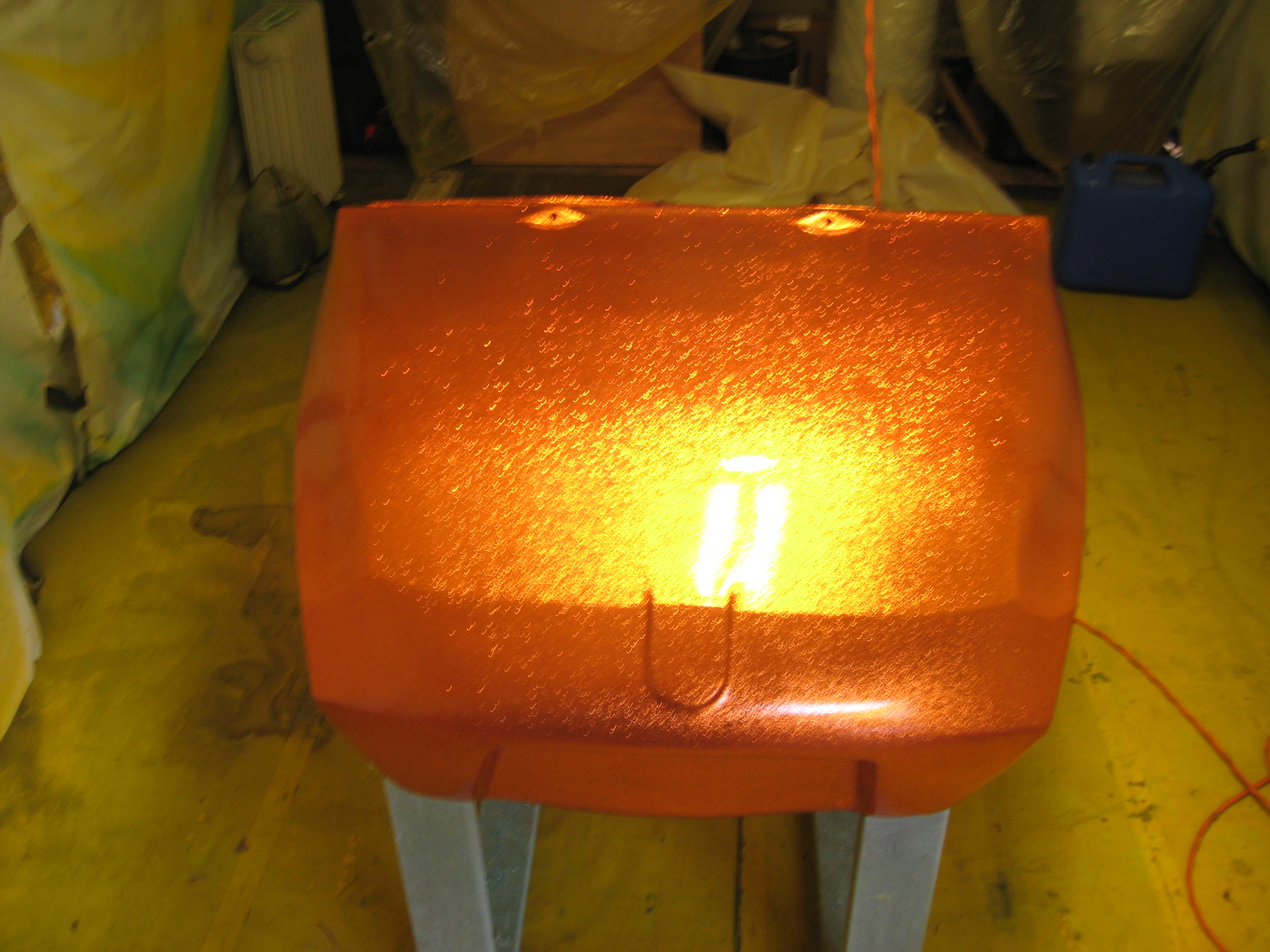 Fiberglass repaired and flaked.