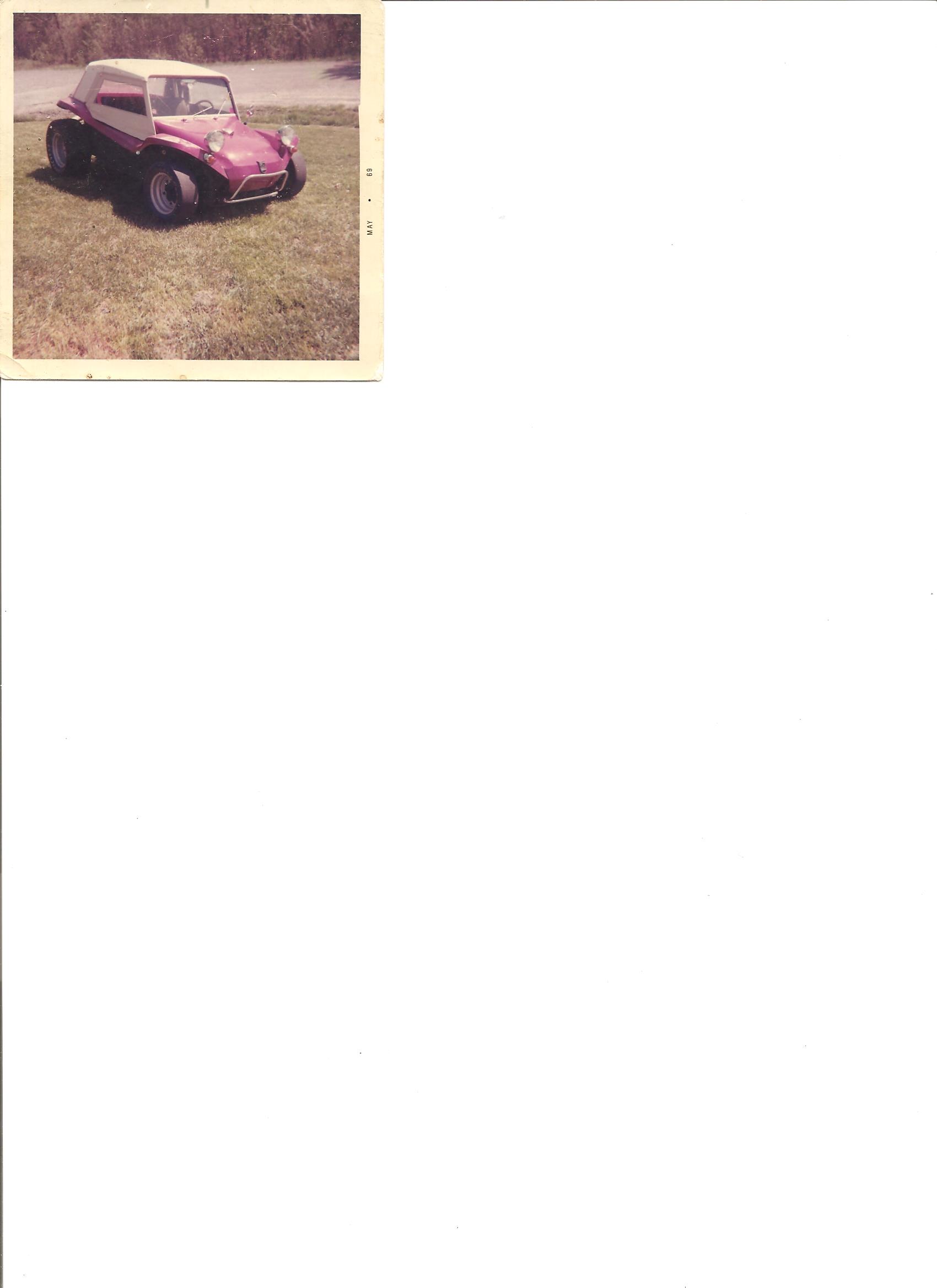 Fuschia Metalflake Manx 1 on 1967 Chassis. Sold in 1969. Trying to locate current owner.