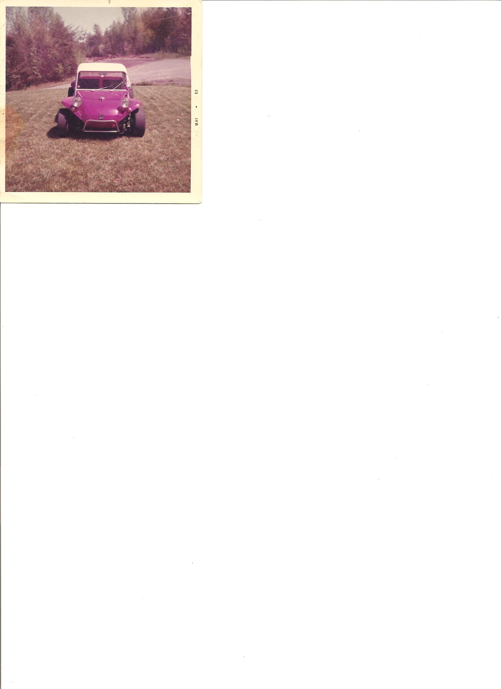 Fuschia Metalflake Manx 1 on 1967 Chassis. Sold in 1969. Trying to locate current owner.