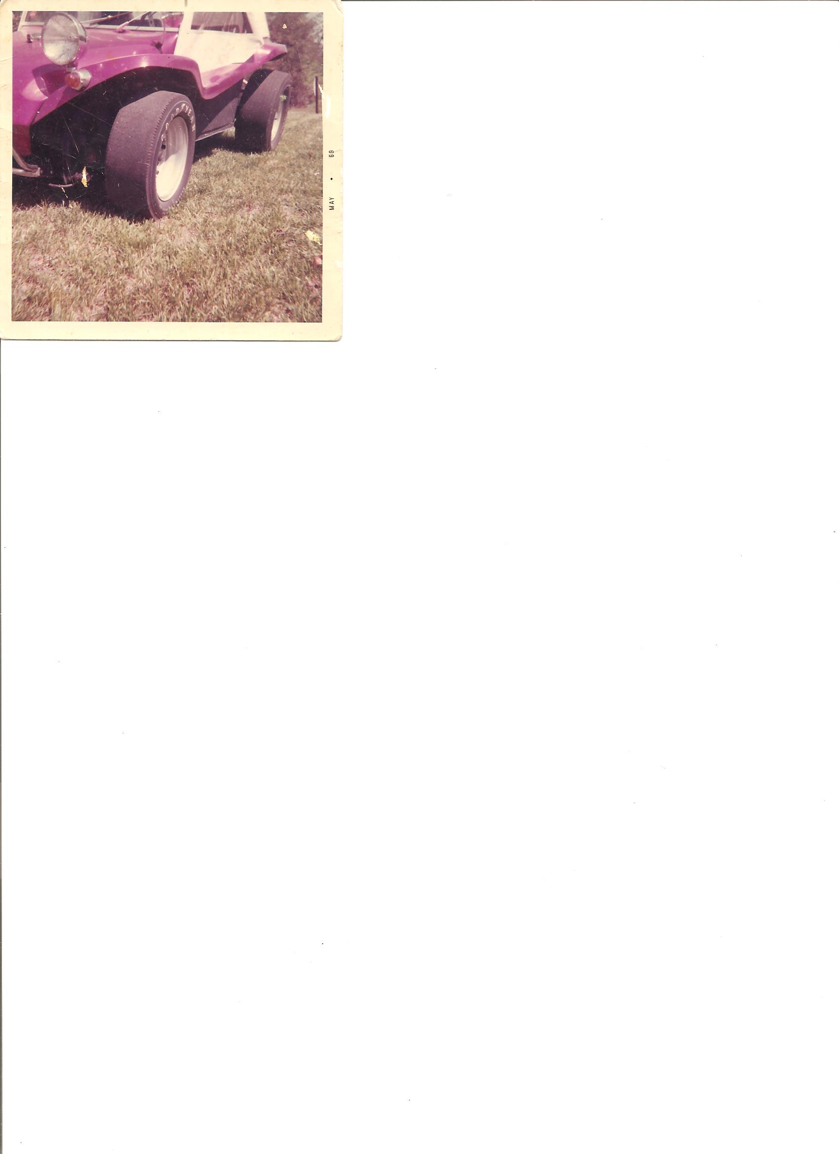 Fuschia Metalflake Manx 1 on 1967 Chassis. Sold in 1969. Trying to locate current owner.
